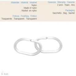 12 Anelli Per Tende Da Doccia Trasparenti, 4,1 X 6 Cm Frandis