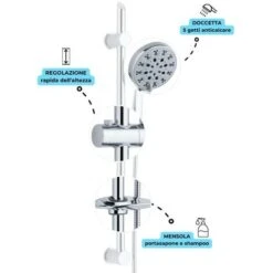 Asta Doccia Saliscendi 005 Completo Doccetta 5 Funzioni Multigetto Salvaforo H 72 Cm Pezzi 1