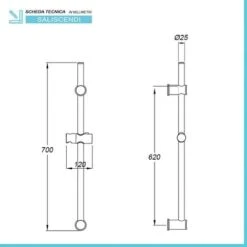 Asta Doccia Saliscendi 006 Completo Doccetta 3 Funzioni Multigetto H 65 Cm Pezzi 1
