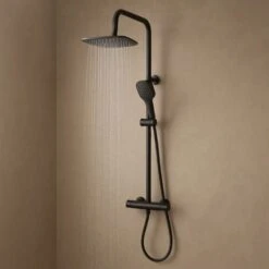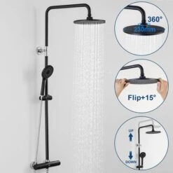 Colonna Doccia Attrezzata Nero Opaco Termostatica 2 Funzioni Soffione Doccetta Quadro Confezione 1