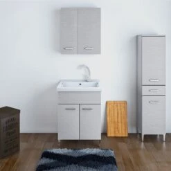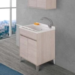 MOBILE LAVATOIO 2 ANTE LEGNO X INTERNO 60×45 (H.85) C/VASCA RESINA E ASSE RESINA – COL: BIANCO