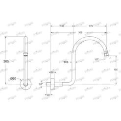 Braccio Per Soffione Doccia Quadrato In Ottone Cromato Completo Di Rosone – 35CM