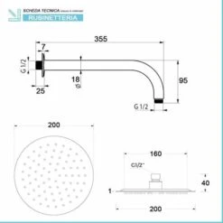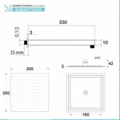Set Doccia Nero Opaco Completo Di Soffione Quadrato 25×25 Cm, Kit Doccetta E Miscelatore