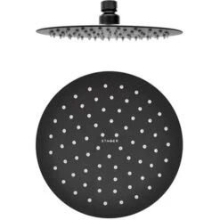 Soffione Doccia Tondo 30 Cm Con Braccio 33 Cm In Acciaio Nero Opaco
