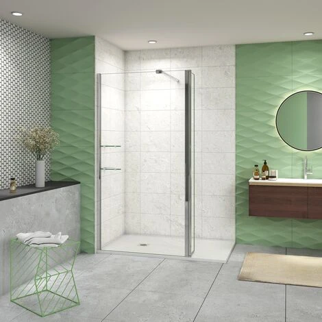 - 4.Parete fissa moderna abbinata alla funzionalità di una paratia movibile, da 30 cm a completare la parete, apertura verso l’interno di 90° e verso l’esterno di 90° . Oltre alla funzionalità di impedire agli schizzi d’acqua fuoriuscire dallo spazio doccia da inoltre la possibilità di ingrandire o estendere il vostro angolo doccia.
