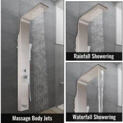 - 【AMPI SCENARI DI UTILIZZO】 – Il colore argento rende questo sistema di pannelli doccia a parete un aspetto di fascia alta nella stanza o nei luoghi commerciali. Adatto per rimodellare il tuo bagno, hotel, resort, appartamenti per migliorare il gusto della stanza e goderti una doccia accogliente dopo una lunga giornata di lavoro.