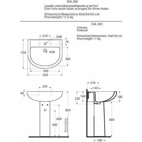 Colonne per lavabi