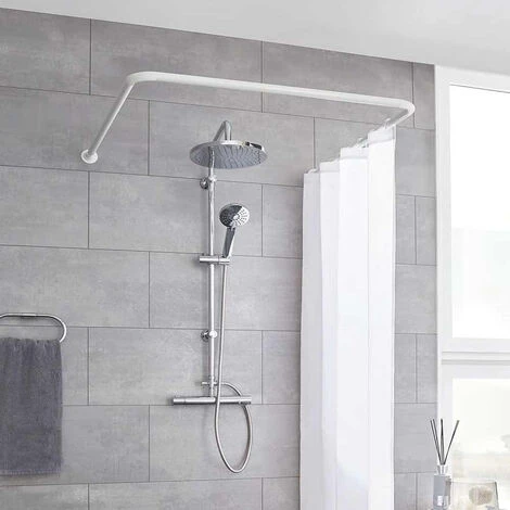 Pratica barra angolare per tende da doccia, con sistema modulare che vi permetterà di istallare la tenda. La barra viene fornita con tutti glia accessori necessari per configurarla.