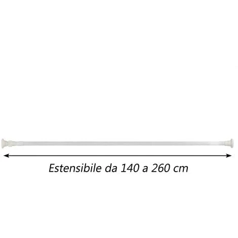 Bastone allungabile, ideale per tende da doccia, asta per tende o come appendi abiti si adatta quasi ovunque grazie alla sua funzione telescopica. Basta allungarlo alla lunghezza desiderata e bloccarlo saldamente in posizione. Grazie alle estremità antiscivolo in gomma su entrambi i lati, non si lasciano segni sulle pareti o sui mobili. L’asta garantisce una presa salda su praticamente qualsiasi superficie solida come piastrelle, intonaco o legno. Si installazione completamente senza viti o fori.
