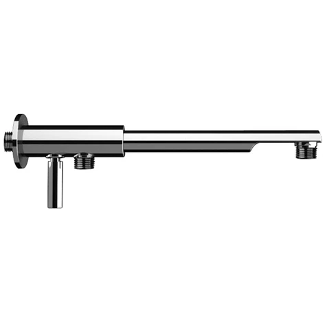 BRACCIO DOCCIA MINIMAL IN OTTONE CROMATO 20 cm con rosetta e con deviatore integrato e doppia uscita 1/2 per attacco sia del soffione che del flessibile doccia