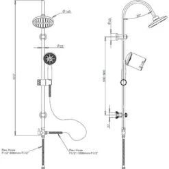 COLONNA DOCCIA A PONTE IN ACCIAIO CROMATO E PARTI IN ABS CROMATO CON SUPPORTI REGOLABILI.