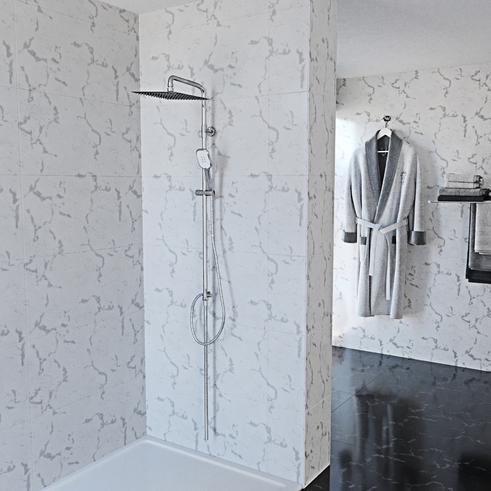Questa colonna doccia non ha un miscelatore, quindi può essere collegata direttamente con il rubinetto esterno già esistente senza dover fare lavori.