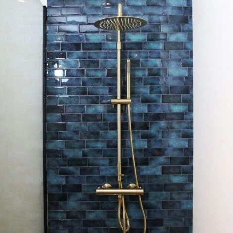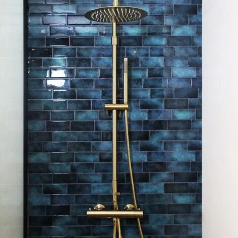 – Colonna doccia estensibile in oro spazzolato senza miscelatore.