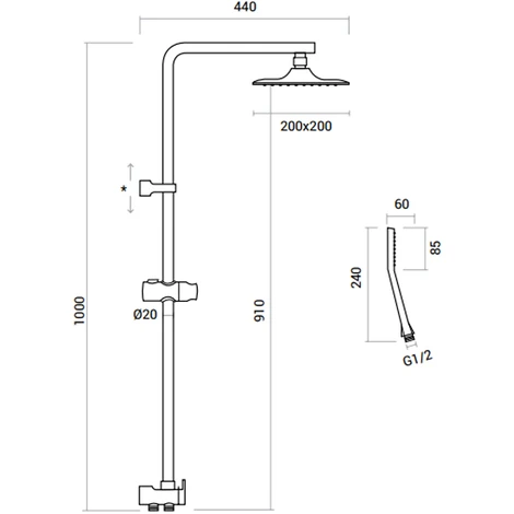 Sia il soffione che la doccetta sono dotati di getti anticalcare che facilitano le operazioni di pulizia.Note per l’installazione: Il supporto sottostante è fisso, quello superiore è regolabile.