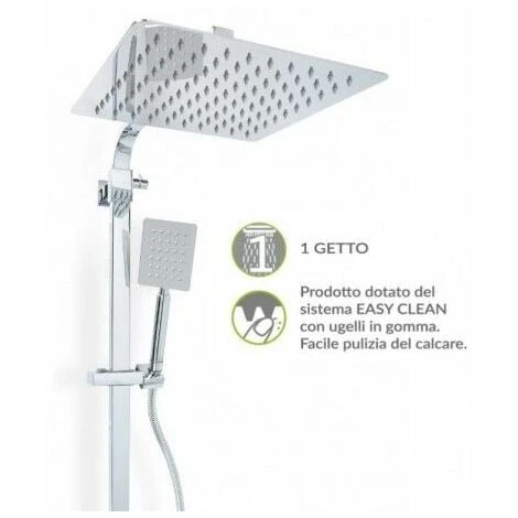 Colonna doccia quadra con deviatore TOP LINE modello ZEUS METAFORM in acciaio inox con soffione e doccetta quadrati. Regolabile in altezza con asta telescopica. Doccetta monogetto e soffione inox AISI 304
