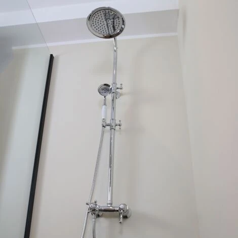 Scoprite Leeds, la colonna doccia cromata retrò con miscelatore meccanico! È composto da un soffione rotondo in ABS e da una doccia a getto singolo, cromata e bianca. Fornito con raccordi eccentrici e a rosetta, sarà facile da installare.