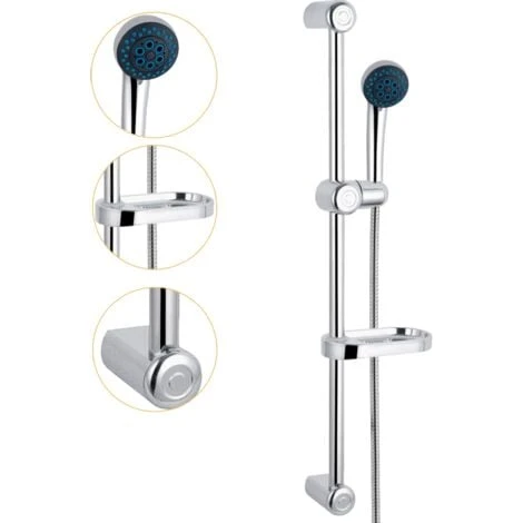 Asta saliscendi completa di doccetta dai 3 getti regolabili in base alle esigenze, il portasapone (altezza regolabile) aggiunge versatilità e comfort.