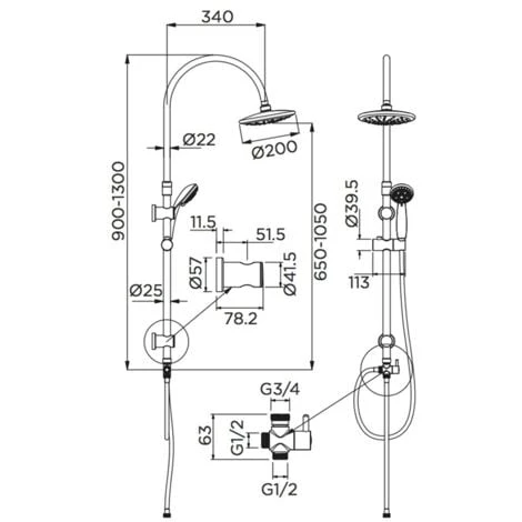 Colonna doccia cromata semplice e lineare. Realizzata in acciaio inox, asta di diametro 25 mm. Supporti scorrevole soffione e doccetta in ABS, deviatore in ottone cromato. Estensibile in altezza da 90 a 130 cm. Soffione tondo ad 1 getto di diametro 20 cm, anticalcare, doccetta 5 funzioni, anticalcare. Flessibili in metallo cromato lunghezza 150 e 50 cm. Possibilità di fissaggio con colla oltre al tradizionale fissaggio con viti.