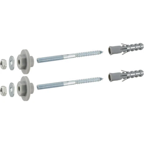 - fissaggi per lavandino su parete piena con rondelle regolabili, viti in acciaio 10×120 mm, tasselli 14×70 mm, dadi e rondelle piatte