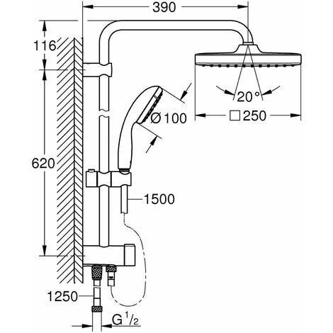 Grohe Vitalio Start – Set Doccia 250, Con Deviatore, 9,5 L/min, Getto Singolo, Cromo 26698000