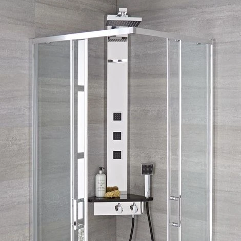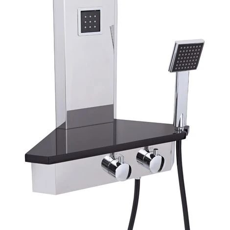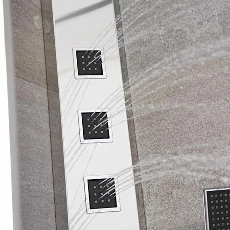 Il pannello dispone di controlli che sono facili da utilizzare e della tecnologia termostatica per assicurare un’esperienza sicura sotto la doccia. Incorpora persino tre getti idromassaggio, un soffione doccia ed una doccia. Il miscelatore termostatico può essere anche utilizzato come mensola portaoggetti.