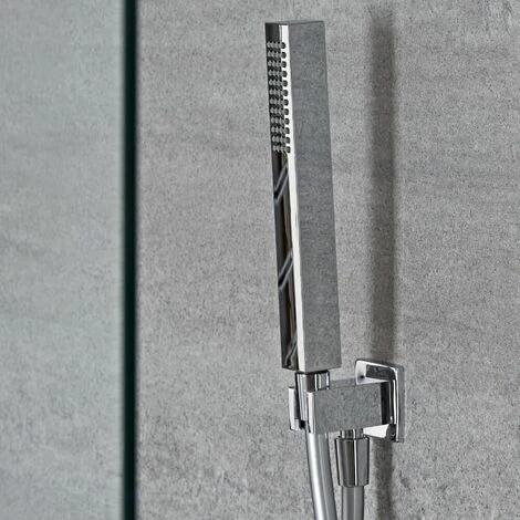 Il kit include: una doccetta quadrata, un gomito, supporto murale e flessibile