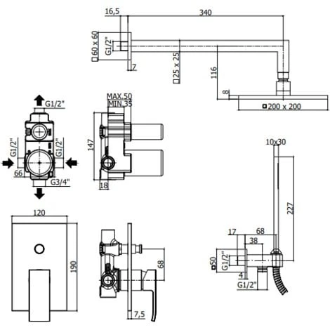 Composizione per la doccia completo di tutto il necessario per un’installazione rapida e moderna, questo kit per la doccia dalla linea quadrata minimale è realizzato in italia con materiali di alta qualità, il soffione ad effetto pioggia con dimensioni 20 x 20 cm e connessione standard 1/2G.