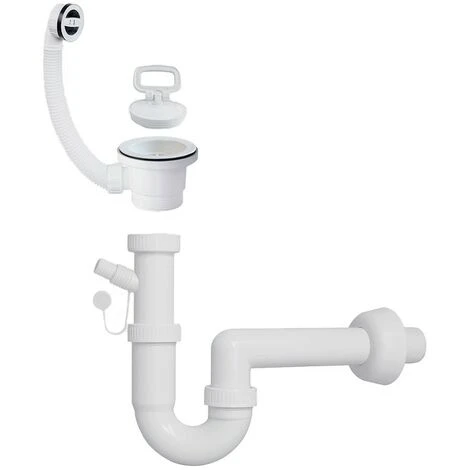Kit di scarico per vasca lavatoio lavanderia con Sifone + Piletta + Troppopieno in plastica Bianco
