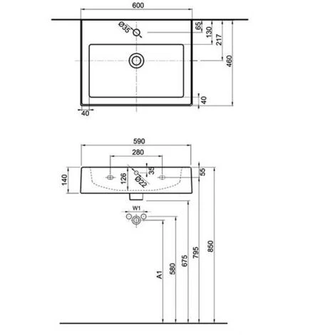 Caratteristiche di Twins Lavabo rettangolare 60x46cm con troppopieno (L51160000):