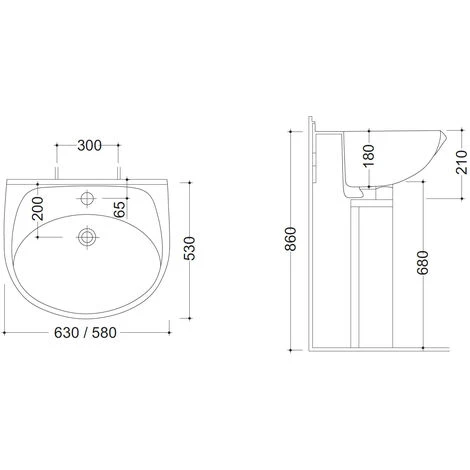 Lavabo champagne 63 cm in ceramica senza colonna (solo lavabo)
