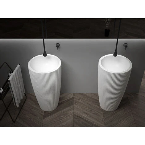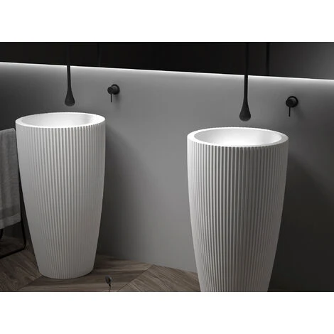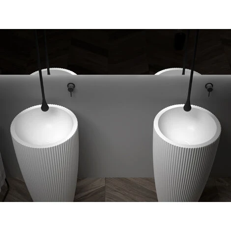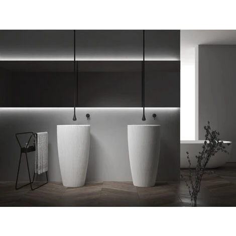 Il lavabo totem ha la possibilità si essere combinato con un rubinetto a muro o con un modello di rubinetteria freestanding. Decorazioni, rubinetteria, piletta Pop-up e gli altri articoli mostrati nell´immagine non sono inclusi in consegna. Potrete scoprire nel nostro catalogo online un’ampia serie di prodotti da abbinare al vostro lavabo.