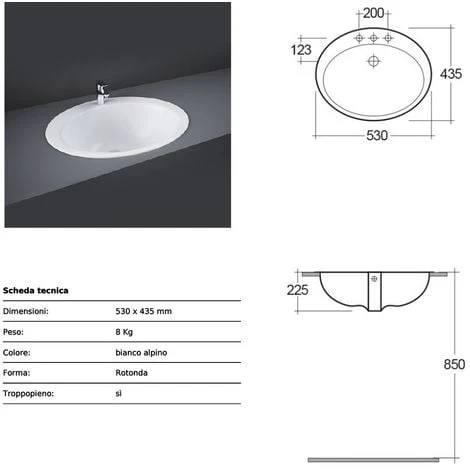 Riepilogo caratteristiche Lavabo incasso soprapiano modello Jessica