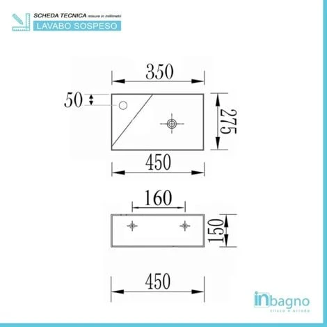 - Tipologia: lavabo bagno sospeso design vasca a dx