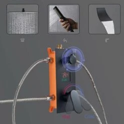 - ❤ Mostra LED Digital: Niente elettricità nessuna batteria, alimentata da flusso d’acqua. Molto lussuoso ed elegante, quando si prende la doccia, che vi mostrerà la temperatura dell’acqua e tempo di utilizzo. Essa vi aiuterà a trovare la temperatura dell’acqua più comodo per voi, consentono di godere la doccia e dimenticare i problemi del giorno