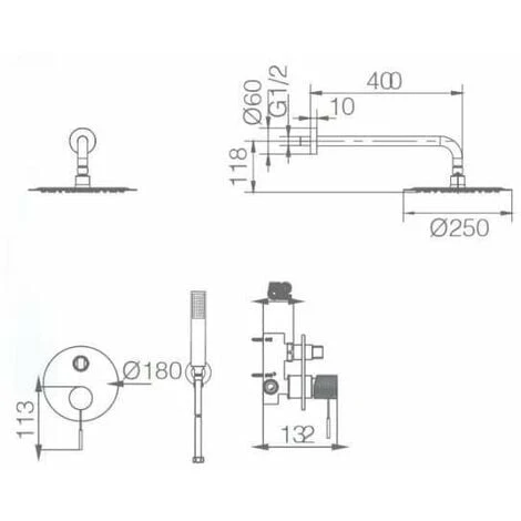 Il soffione doccia è in acciaio inox, tondo, extrapiatto e anticalcare; e ha un diametro di 25 cm.