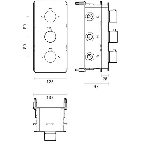 incasso modello ‘T’ in ottone con deviatore