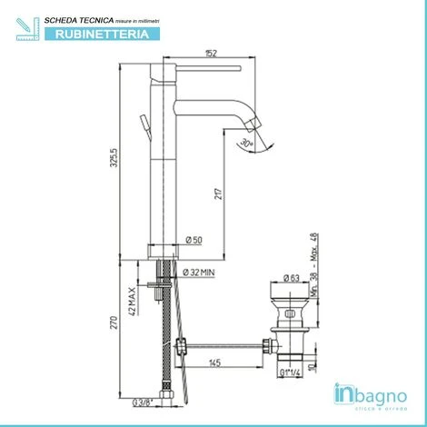 - Tipologia: Miscelatore Lavabo Alto
