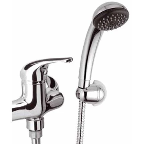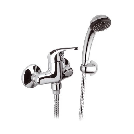 Miscelatore per doccia con interasse di 10 cm realizzato in ottone cromato lucido, dotato di doccino con supporto a muro e flessibile lungo 150 cm.; Le rosette coprimuro hanno un diametro di 70 mm. La serie 100 è plasmata con linee semplici e tondeggianti che la rendono adatta a qualsiasi stile ed arredo. Le parole d’ordine di Remer Rubinetterie sono qualità , affidabilità e stile.Tipologia : Esterno
