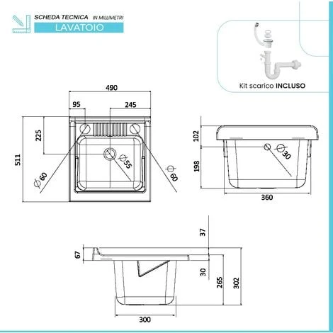 - dimensioni vasca: 49 x 51,1 x 30,2h cm;