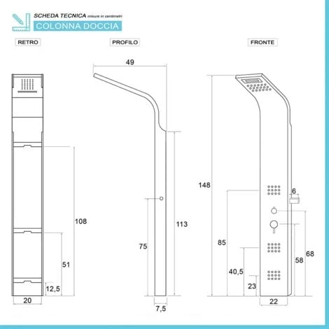 - Dimensioni: H 148 x p 49 x L 22 cm;