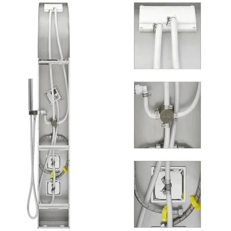 La colonna implementa 4 funzioni all’avanguardia: doccino cromato, soffione, effetto cascata, getto orizzontale “massaggio”. Il pannello doccia è realizzato in acciaio inox, molto resistente alle corrosioni e facile da pulire. La minuzia estetica del prodotto è direttamente proporzionale ai comfort offerti. Difatti sono inclusi il doccino in abs cromato e il laccio doccia da 150cm.