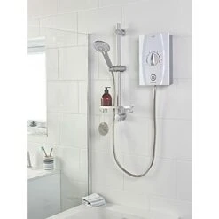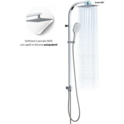 - Il soffione a pioggia, i getti di massaggio, la doccia a telefono e i pomelli sono cromati