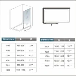 - 1. Walk in parete fissa dimensione disponibile: larga 50 cm, alta 200 cm;