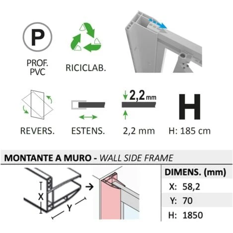 • Dimensioni montante a muro 58,2×70 mm