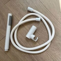 Il supporto da parete minimalista in bianca. È composta da una doccetta, un tubo flessibile e un supporto a parete!