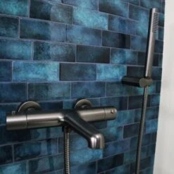 Il supporto da parete minimalista in Gun métal. È composta da una doccetta, un tubo flessibile e un supporto a parete!