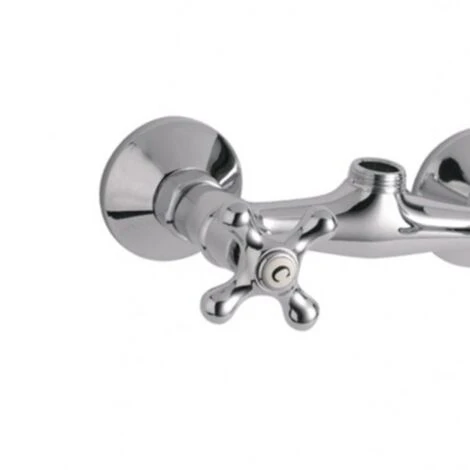 Gruppo doccia esterno della serie Liberty interamente cromato e dallo stile vintage. Frontalmente sono presenti due leve dall’estetica rètro che, una volta ruotate, consentono la regolazione dell’acqua calda e fredda. Il prodotto dispone di un’uscita standard da 3/4 che consentirà di poter collegare una colonna doccia compatibile a scelta. I due rosoni destinati a coprire i punti acqua di applicazione hanno un diametro di 6,5cm. Su ogni manopola è indicata l’iniziale della tipologia d’acqua utilizzata e l’interasse del prodotto ha uno standard di 15cm che possono essere varianti in eccesso o difetto di 2cm. Per una corretta manutenzione del prodotto e per mantenere la qualità della finitura, si consiglia un’accurata e delicata pulizia ordinaria.Tipologia : Con manopole