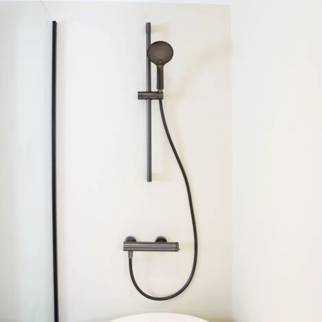 Il miscelatore doccia Luisa in versione contemporanea Gun Metal. Un design minimalista per il vostro bagno, che completerà il look della collezione Luisa.