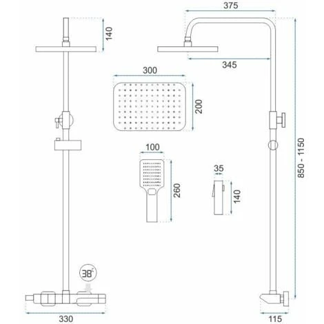 - Dimensioni soffione doccia: 25 x 25 cm