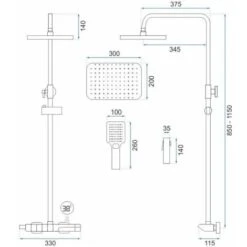 - Dimensioni soffione doccia: 25 x 25 cm